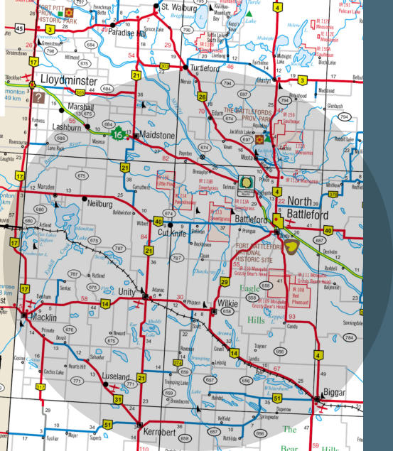 battlefords, Saskatoon, Cut Knife, Unity, Rosetown, Kindersley, LLoydminster, Nielburg, Maidstone